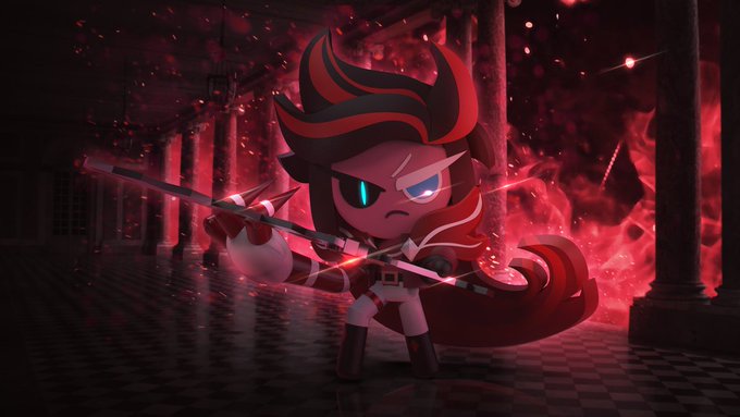 수많은 케이크 괴물들 앞에서 지휘를 시작하는 벨벳케이크맛 쿠키.